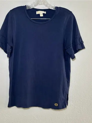 Navy T-shirt with gold MK logo Approx. Measurements: Bust/ pit to pit = 20 inches Waist = 19 inche... Show more