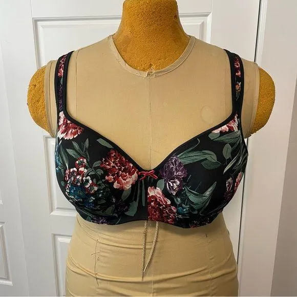Cacique Black Floral Velvet Bow Lightly Lined Balconette Bra 40DD Size undefined - $22 - From Sierra