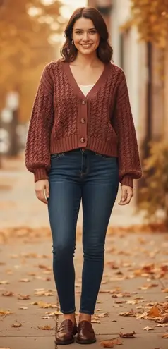 John + Jenn Brown Oversized Cropped Knit Chunky Cardigan Size Medium - $100 - From Linda