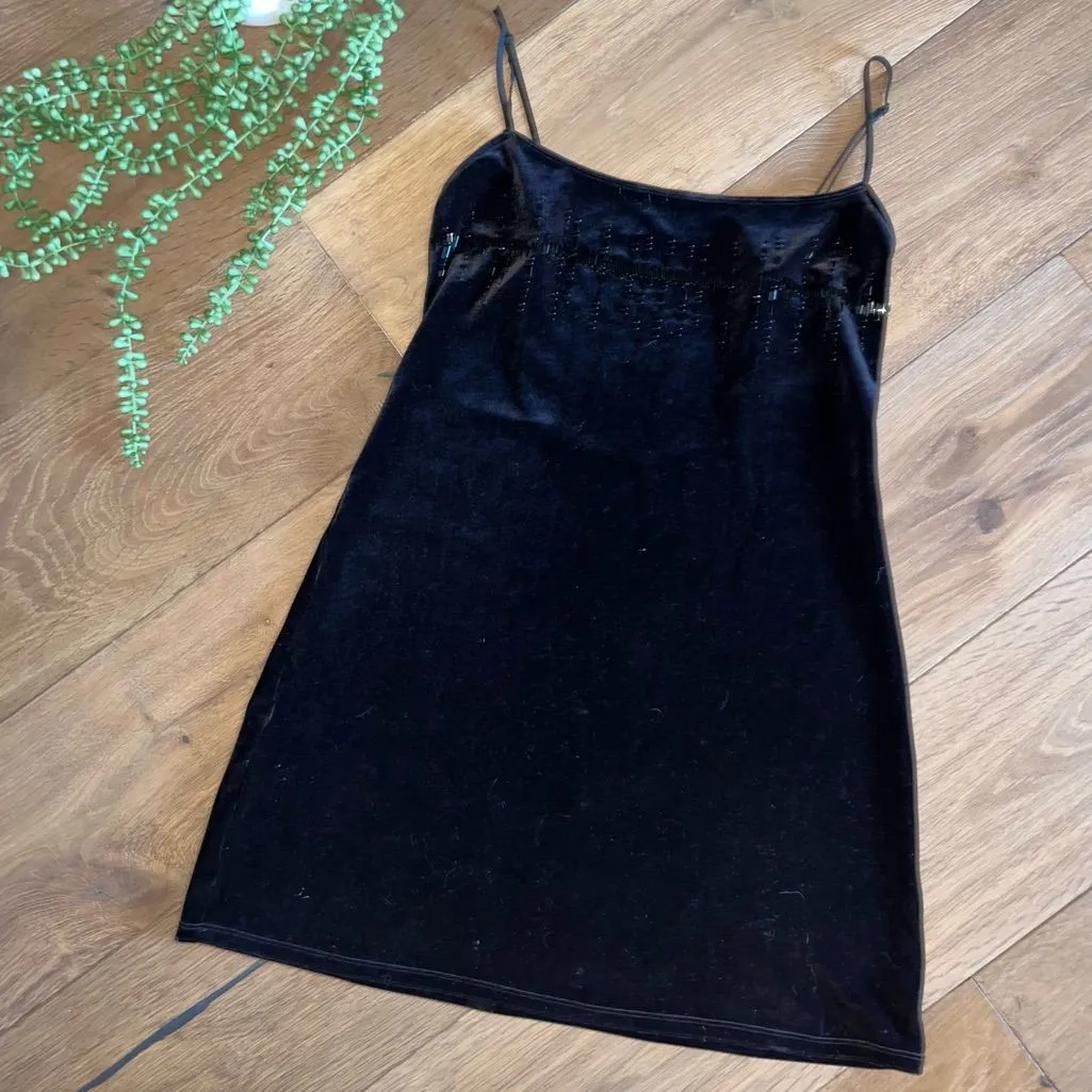 Victoria’s Secret Size small Black Night gown chemise Adjustable straps Beaded Velvet feel Lo... Show more