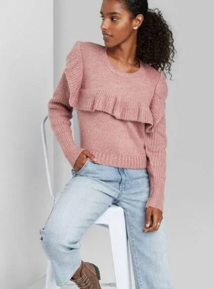 Wild Fable Mauve Pink Knit Ruffle Cropped Pullover Sweater Very good used condition. Minimal signs... Show more