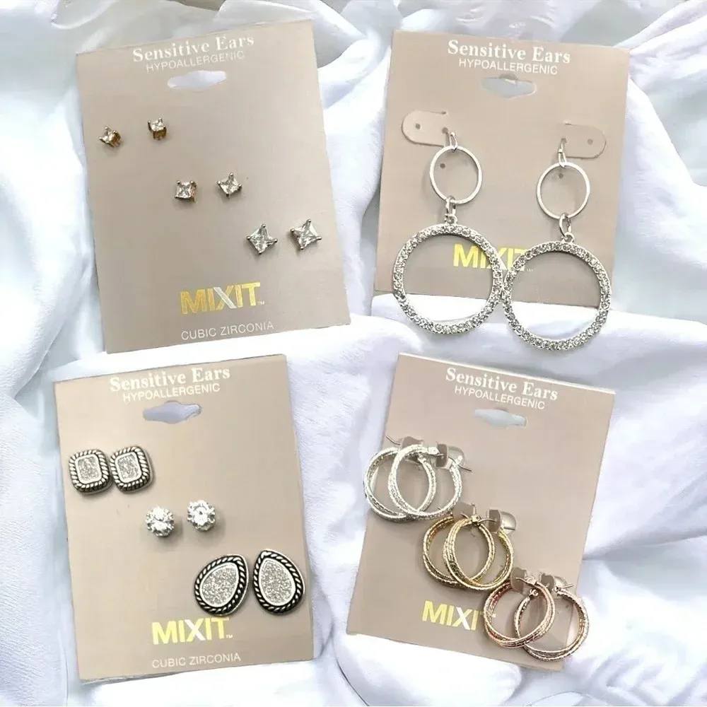 NWT 4 Pack of Mixit Sensitive Ears Hypoallergenic Cubic Zirconia Gold - $31 New With Tags - From Kaitlin
