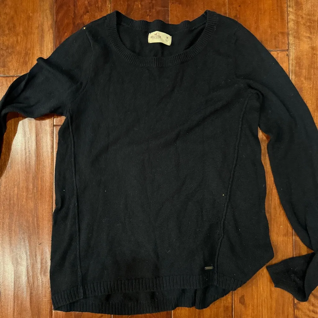 Looks black in the pictures, but it’s a navy sweater from Hollister. The diagonal seams are exposed... Show more
