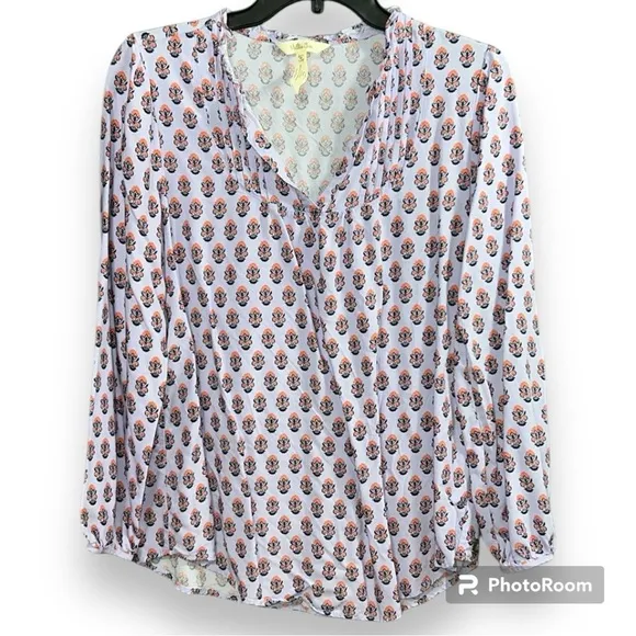 Matilda Jane sz medium pleated v-neck purple orange topiary blouse 3/4 sleeves - $22 - From Melissa