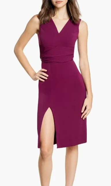 Dress the Population Alessia Tie Waist Crepe fitted cocktail Dress dark magenta Purple Size M - $65 (74% Off Retail) - From Miriam