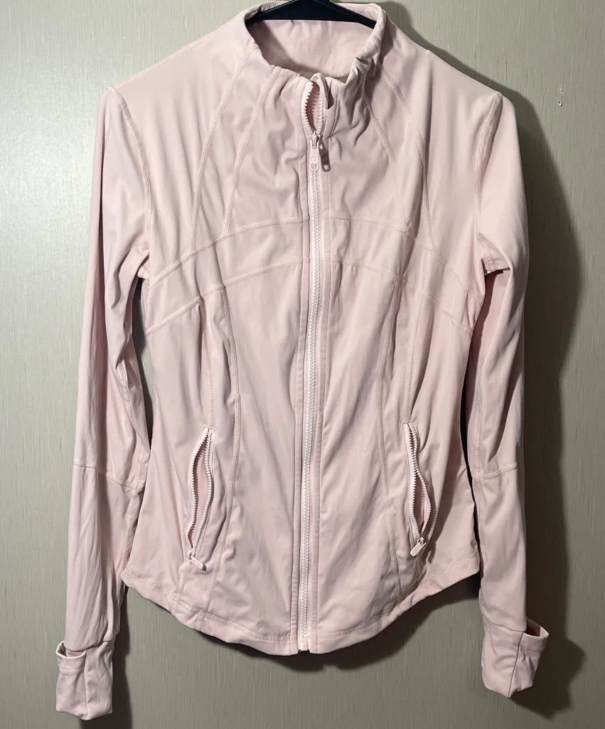 Light pink utility jacket with zip closure. Features side pockets and a sleek design. Ideal for vers... Show more
