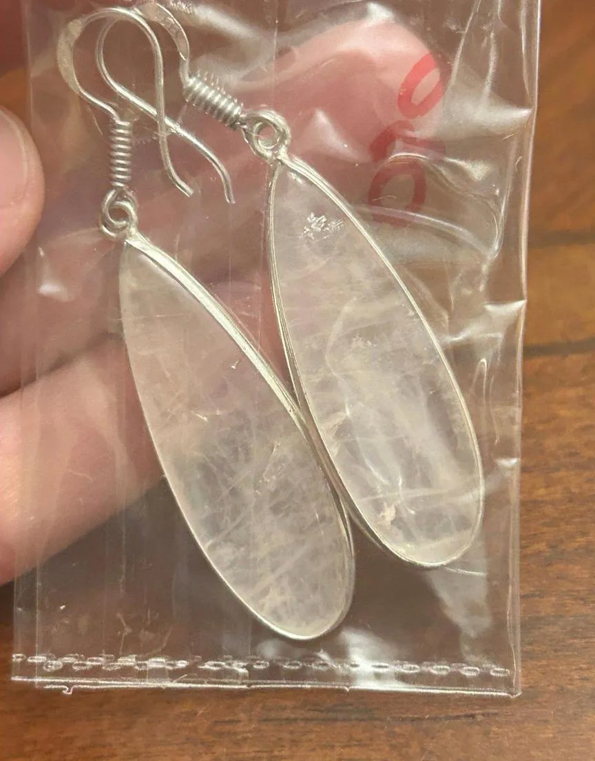 Earrings 925 sterling silver natural gemstone dangle earrings o30 cracked scrap - $28 - From Dorota