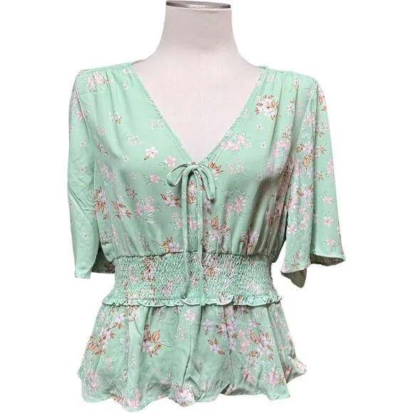 NWT - new with tag 100% Polyester Short loose flowy sleeves Deep v-neck accented with a small bow Smocked waist This Lily White V-Neck top is a beautiful addition to any wardrobe! The flowy design ensures a comfortable and flattering fit, while the green and pink floral pattern adds a touch of femininity. Perfect for both casual and dressy occasions. Get ready to turn heads with this stylish and versatile piece! Measurements (lay flat) Sleeve Length 12.5" Chest 20" Waist 14.5" Length from center back neckline to bottom hem 22.5" Measurements are approximate Color may vary depending on screen settings or lighting I consider all reasonable offers FAST shipping Smoke-Free and Pet-Free Home Tags: Lightweight Flowy Loose Slimming Flattering Floral Flower Spring Summer Garden Prairie Boho Bohemian Cottage Feminine Pastel Easter Fairy Romantic