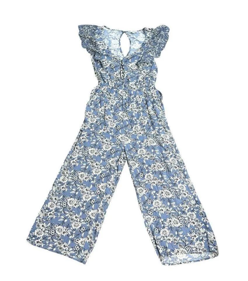 American Eagle Outfitters Eyelet Flutter Sleeves Romper Size MEDIUM. Blue/cream. Not quite full leg,... Show more