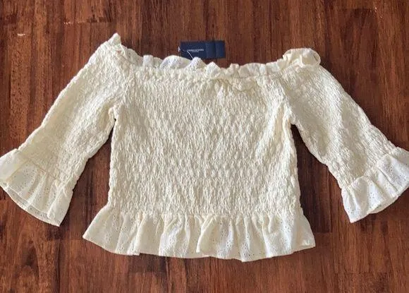 American Eagle Yellow Ruffled Smocked Crop Top Off Shoulder Blouse Frilled NWT Brand new with tags... Show more
