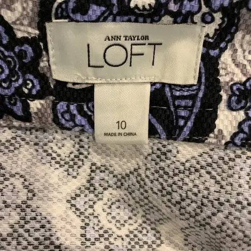 LOFT Skirt Floral Paisley Black Blue White Sz 10 Pencil mini skirt LOFT white black and blue patter... Show more