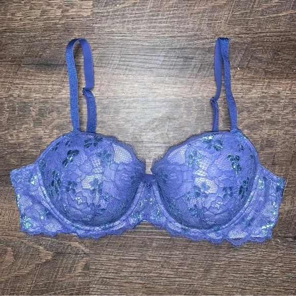 Victoria’s Secret Dream Angels Purple Lace Shimmer Design Lined Demi 36C Excellent Condition