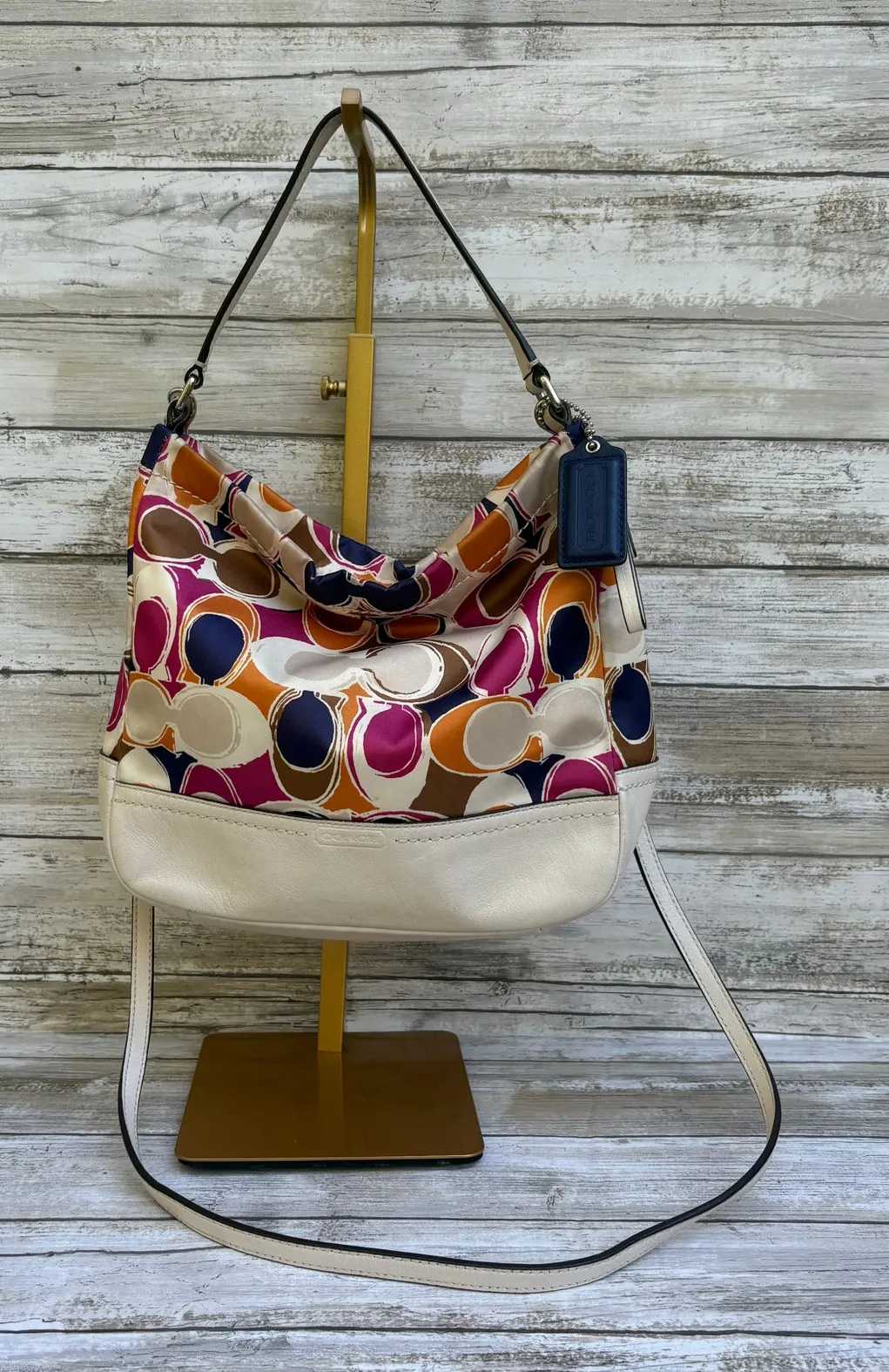 Brand: Coach Style name/number: Style notes: colorful, boho, preppy Material: satin fabric and leath... Show more