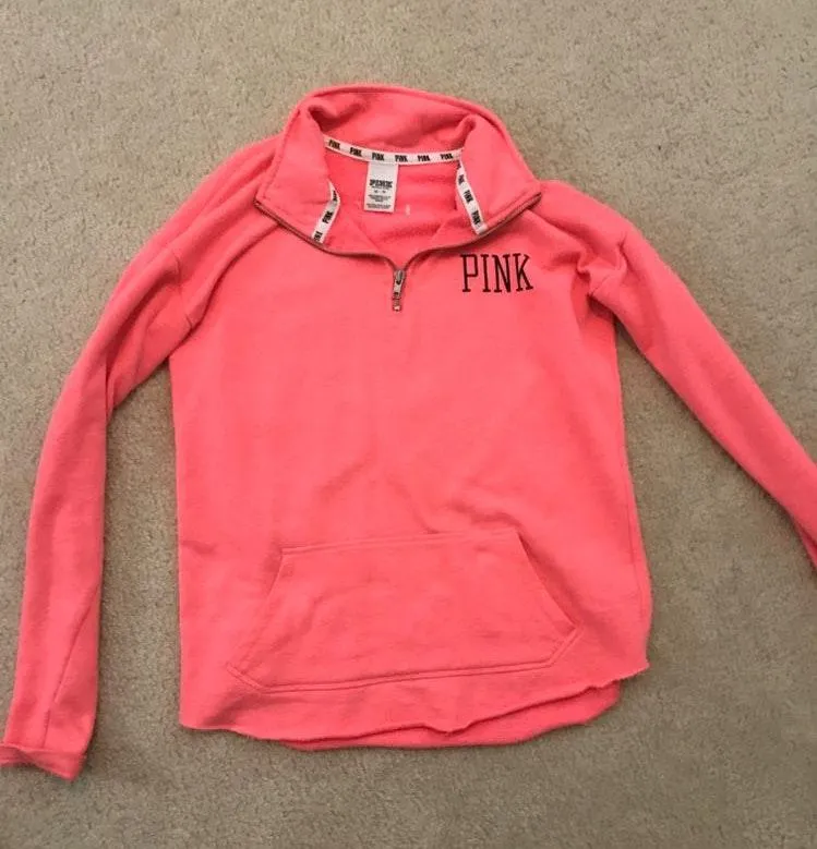 PINK pullover/ quarter zip in the color bubblegum pink . Black PINK logo. Sweatshirt material with f... Show more