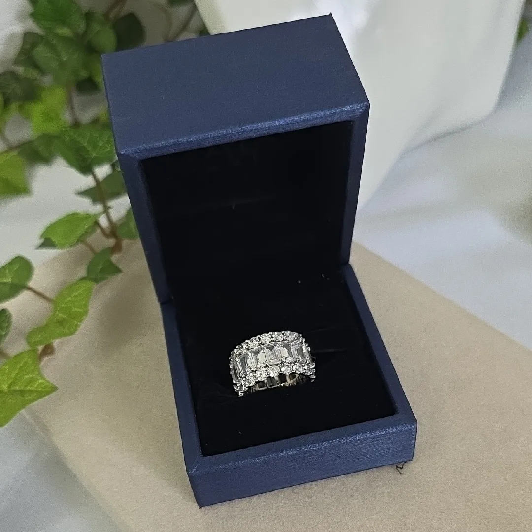 Beautiful band ring Sterling silver 925 Triple row eternity ring Baguette stones Rhodium feel By It... Show more