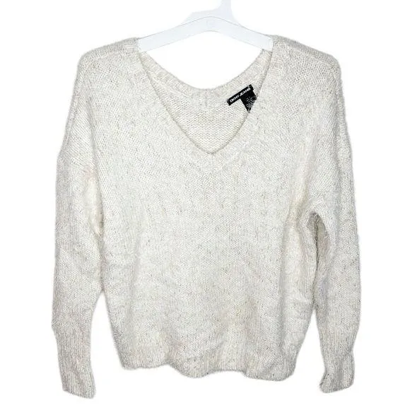 DKNY eyelash metallized v-neck plush sweater cream and gold Good used condition, size S Cream eyel... Show more