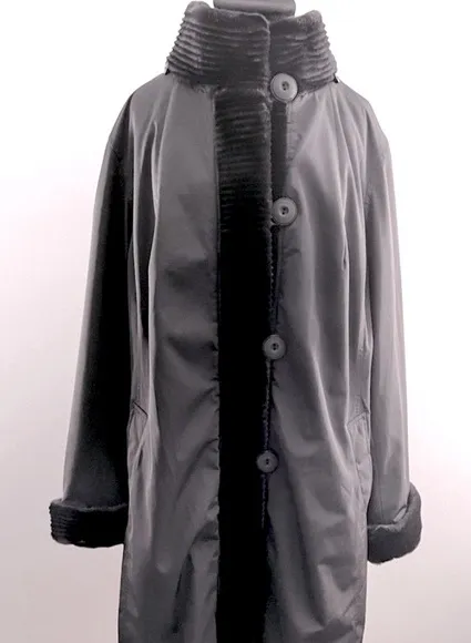 Condition | EXCELLENT, Like New GALLERY Trench Coat with Black Faux Fur SIZE | 1x * this easily compares to one of my favorite designer coats in both looks and comfort. * I like my winter coats to fit oversized for winter layers, and as an XL, this has been perfect for trips to NY walking around. * water resistant trench paired with a very soft faux fur design around the neck, inside and cuffs for a touch of wavy warmth and style with 2 deep pockets. * I’m 5’8 and this falls at my knees. *.no hood. Color Note : The trench is light black and faux fur is dark black. Midweight Contrast cuffs & collar Button & zipper closure Long sleeves 2 exterior pockets approximate measurements buttoned : underarm to underarm 27” sleeve cuffed 25” sleeve uncuffed 27” length 38” 💘 curated closet gift with purchase!