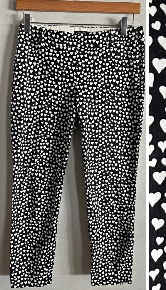 Adorable J.Crew Mercantile ankle pants featuring a playful white heart print on black. Mid-rise with... Show more