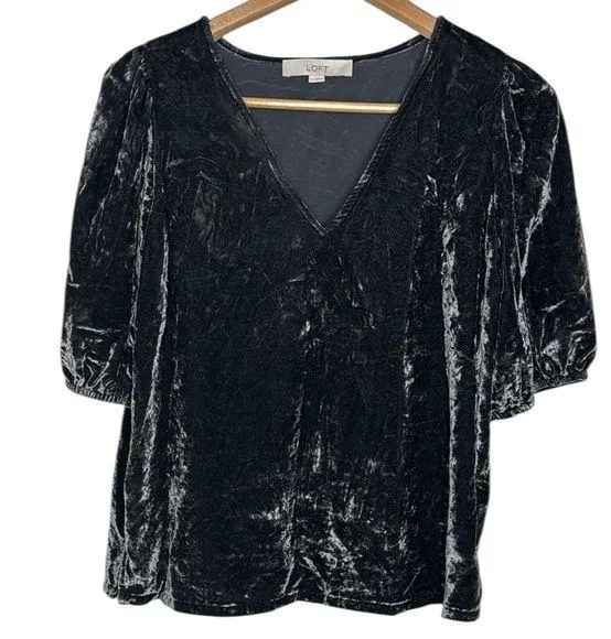 LOFT Dark Gray Velvet V-neck 1/2 sleeve popover Top great used condition, Size S V-neck line Gray V... Show more
