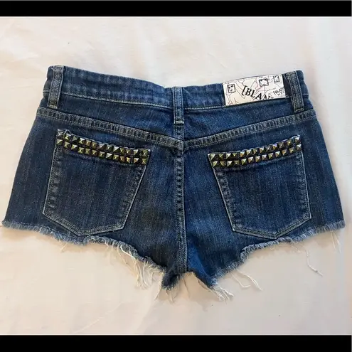 Excellent condition Blank Jean Shorts 2” inseam Brass Studded detailing back pocket Dark denim wa... Show more