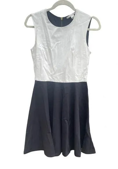 Pre owned excellent condition. Black and white colorblock dress. White portion of dress is leather.... Show more