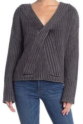 Wildfox Gray Black Knit Keyhole Cut Out Back Long Sleeve Sweater Small This sweater is in excellent... Show more