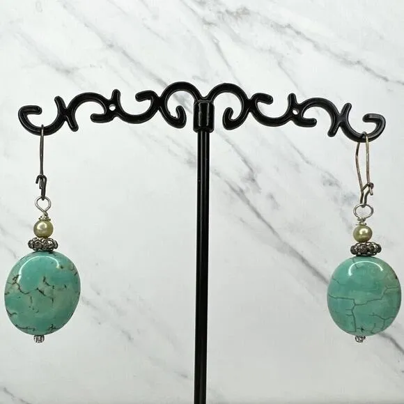 Silver Tone Faux Turquoise Beaded Dangle Earrings Pierced Pair - $7 - From Accessory