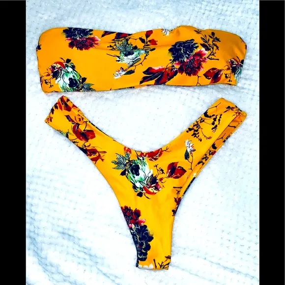 ZAFUL Matching Bikini Set Bright gold/mustard floral swim set by ZAFUL Matching top & bottom bikini... Show more