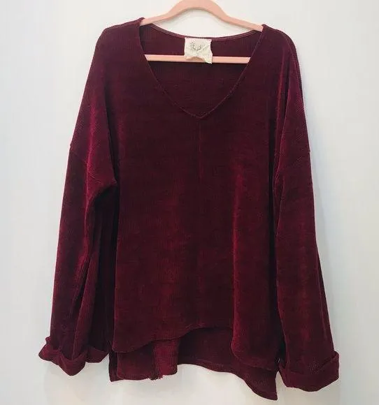 Fantastic Fawn Boutique Vneck Maroon Oversized sweater sz Medium - $31 (46% Off Retail) - From Marissa