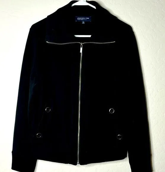 Jones New York Signature Petites black zip front jacket in size Petite Medium. Two side front pocket... Show more