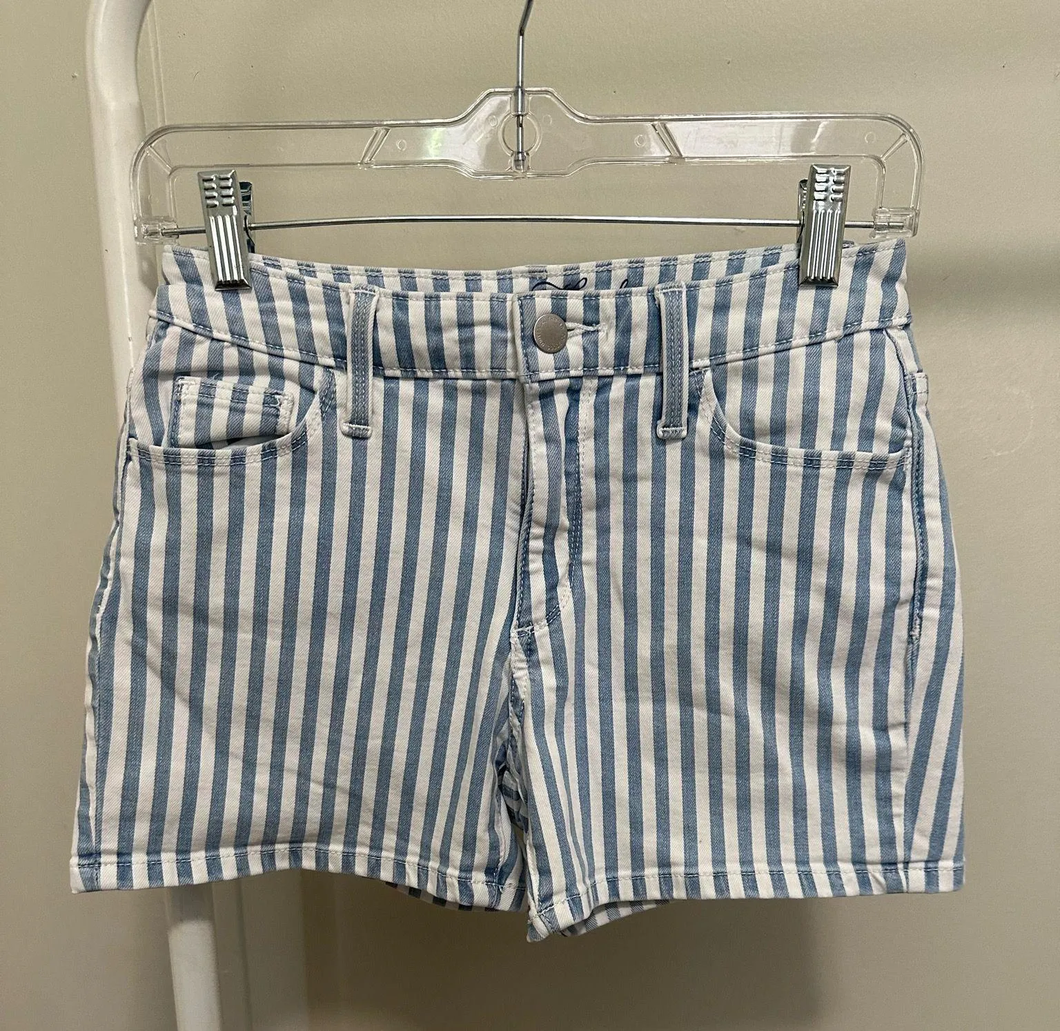 Blue and White Striped Shorts High Rise Midi Universal Thread 0/25R 28-29” waist 9.5” rise 4” inse... Show more