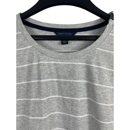 This Tommy Hilfiger Y2K grey cotton top features a striped pattern and a crew neckline. The 3/4 slee... Show more