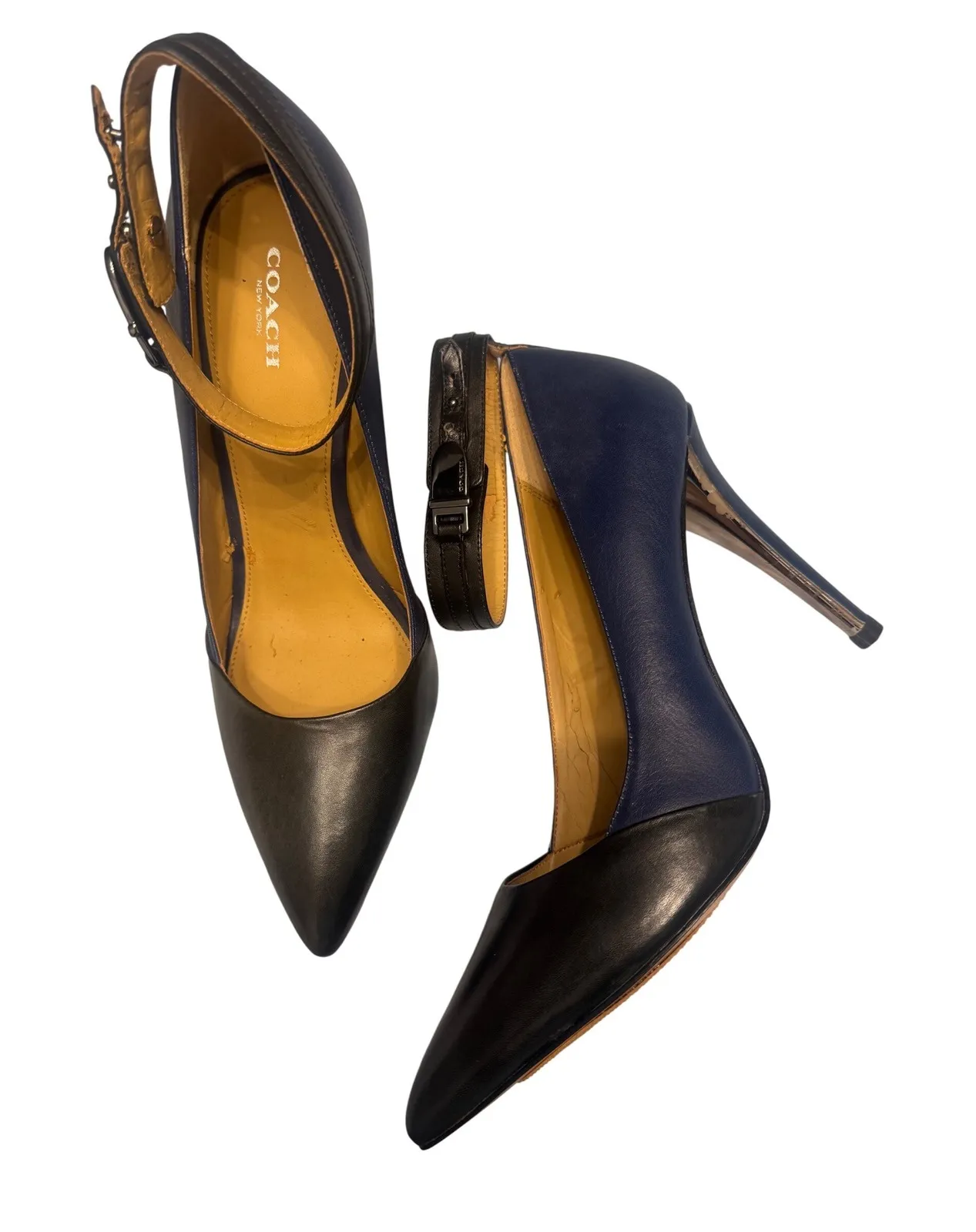 A stylish pair of Coach ankle strap heels crafted from leather. These pointed-toe pumps feature a so... Show more