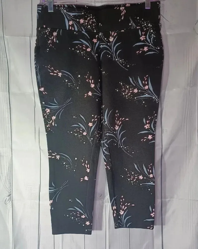 Torrid cropped black floral pull on pants Size 00 M/L waist 32 inseam 22 82% Rayon 13% nylon 5% span... Show more