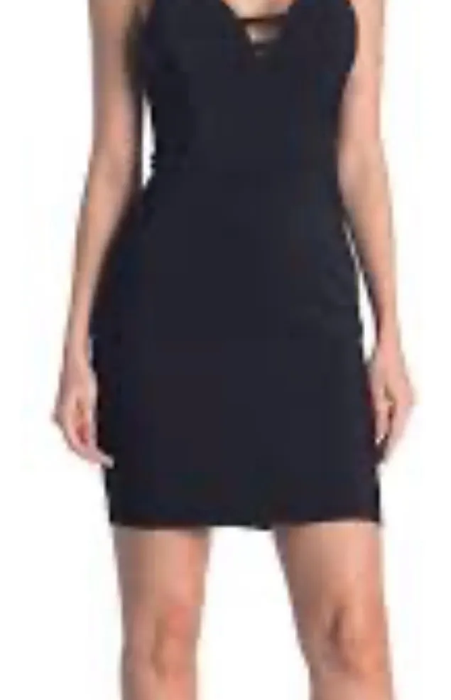 Chic black mini dress by Guess. Perfect for a night out. Sleek and stylish design.