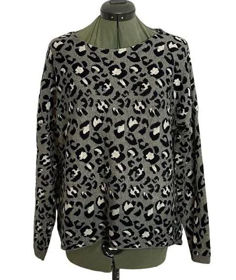 Ann Taylor LOFT Knit Sweater Pullover Top in Grey & White Leopard Print Women's Size Small Soft k... Show more