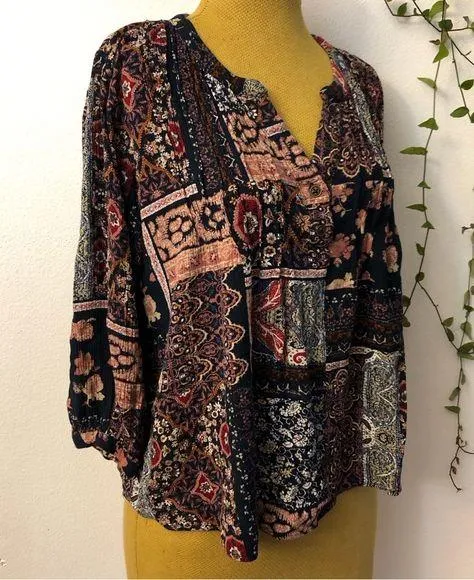 Size M Womens Boho Peasant Floral Patchwork Blouse Multicolor Multi Size M - $13 (56% Off Retail) - From Maryna