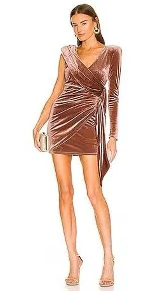 Michael Costello Revolve Lafayette Dress Velvet Chocolate Brown One Shoulder Size M - $98 - From Abby