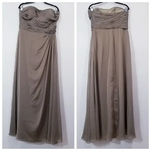 Bari Jay Olive Green Pleated Rhinestones Strapless Dress size 12 Sleeveless, Strapless, Chiffon Even... Show more