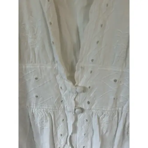 Soft Surroundings womens blouse size S Icon Melissani tunic buttons deep v neck rayon lace and embroidered bell sleeves good preowned condition feminine, boho, dainty, basic, staple