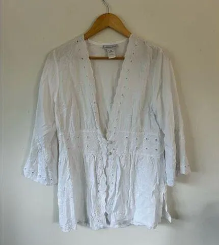 Soft Surroundings womens blouse size S Icon Melissani tunic buttons deep v neck rayon lace and embr... Show more