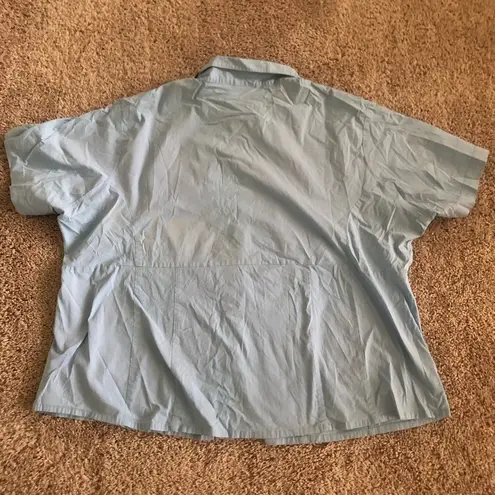 Short Sleeve Baby Blue Button Up Blouse Previously owned Has permanent marker on the size tag, h... Show more