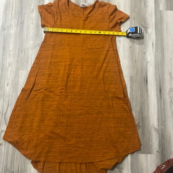 LuLaRoe Carly dress XXsmall swing dress hi Low design, rust, heathered dark gray