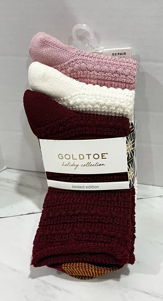 Goldtoe Holiday Collection Crew Socks 3 Pair Textured Size Fit Shoe 6-9 Pink - $16 New With Tags - From Jenny