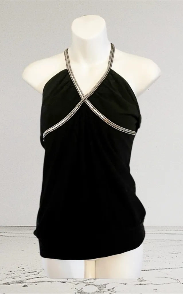 Vintage 90s Y2K Black Sequin Open Back Top Size Large Charlotte Russe Super cute Black top with Sil... Show more