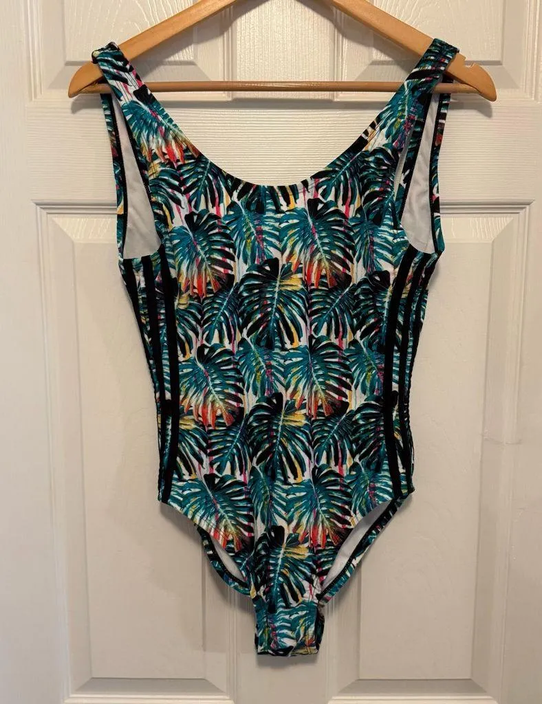 NWOT Adidas Originals Painted Palms 3 Stripe One Piece Swimsuit Green Size M - $48 - From Amber
