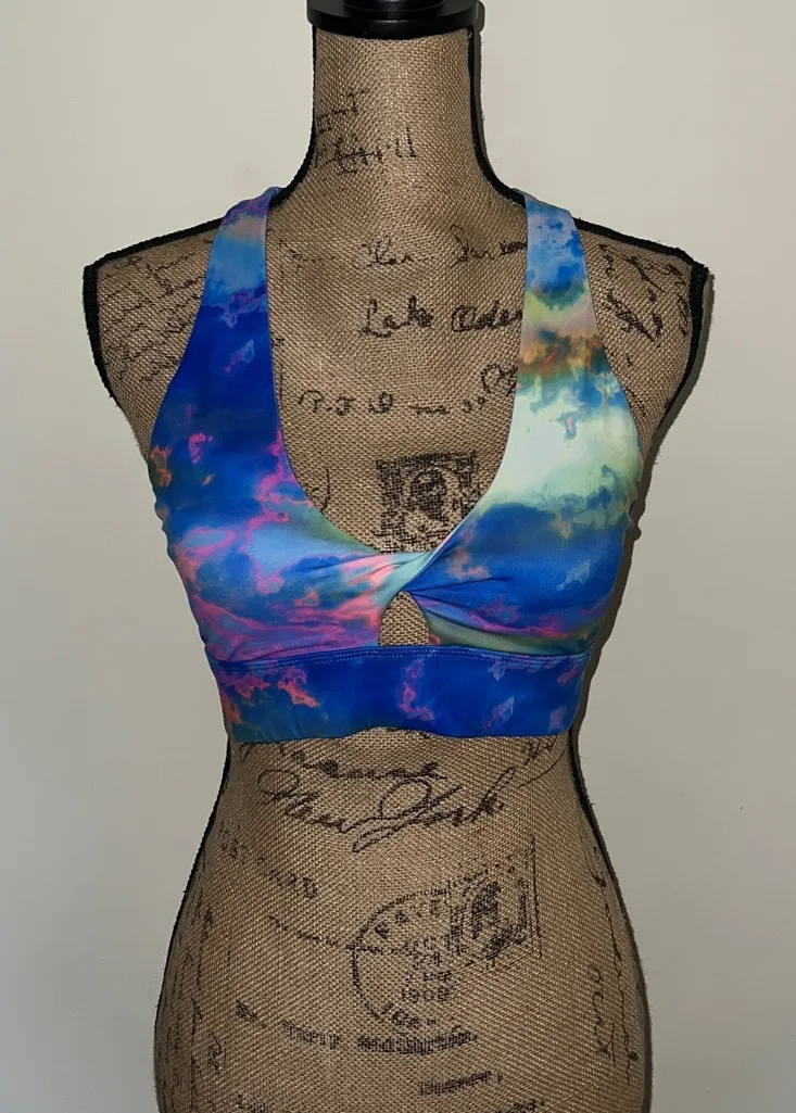 Eye-catching sports bra with key hole cutout. Ideal for workouts or casual wear. Crisscross back des... Show more