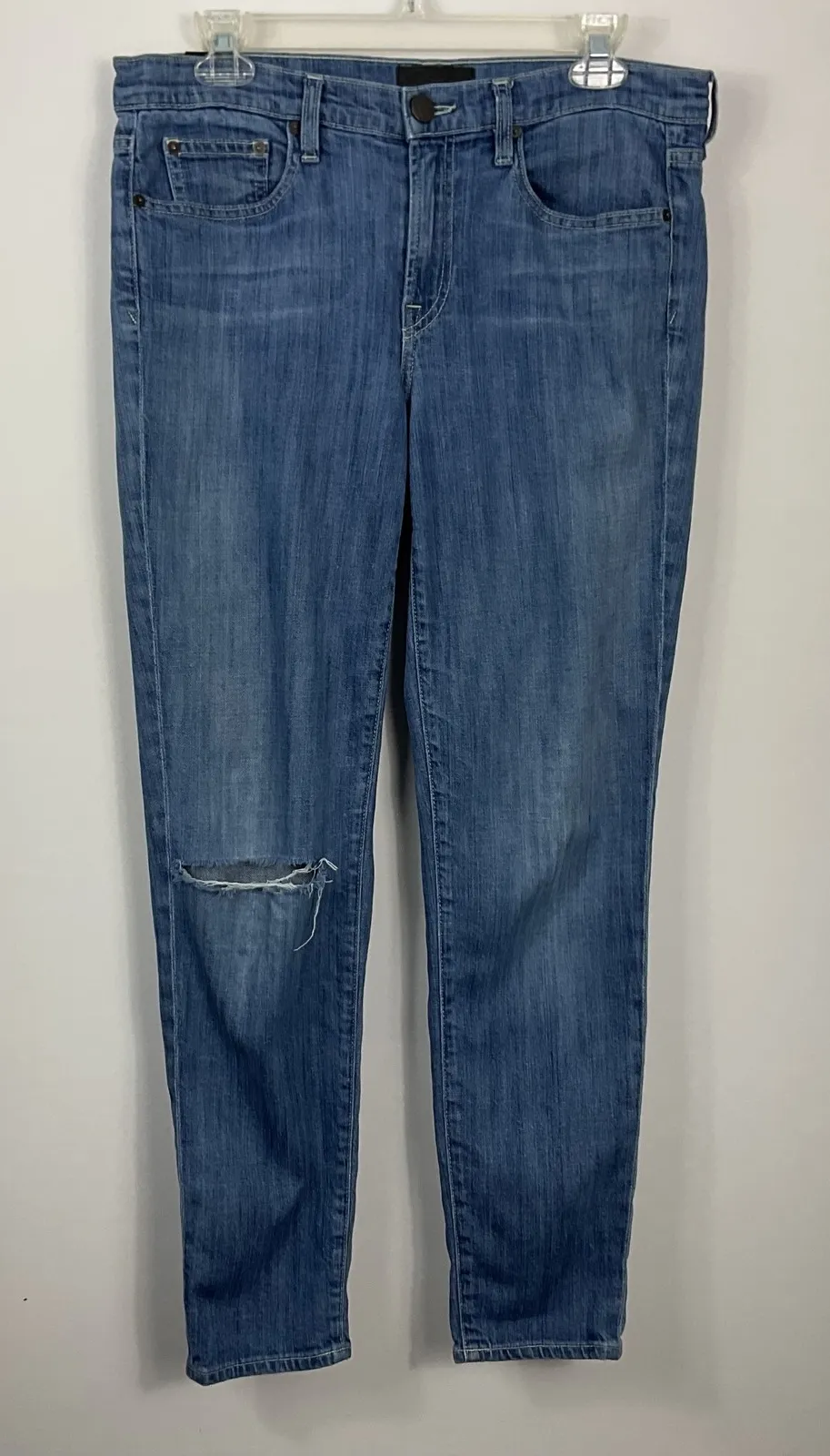 Keywords: Vince jeans, womens jeans, size 28, blue jeans, distressed jeans, ripped jeans, relaxed fit, rolled hem, denim, casual jeans, mid rise jeans, mason jeans, designer jeans