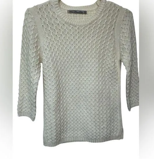 Zara Cream Cable Knit 3/4 Sleeve Sweater. Size small. Acrylic. NWOT