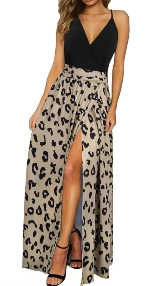 Newshows Maxi Dress Vacation Spaghetti Strap Boho Split Sundress lot Medium NEW Black - $50 New With Tags - From E